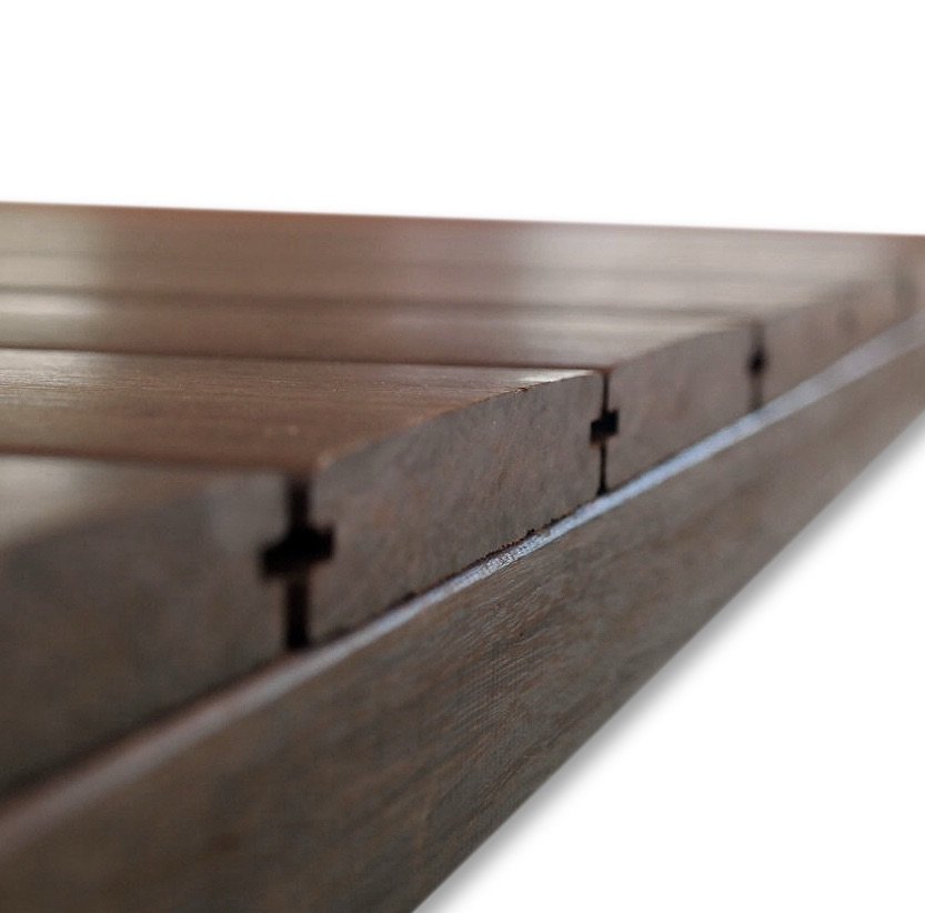 بفضل الضغط العالي والمعالجة الحرارية، تكون ألواح Bamboo X-treme أكثر استقرارًا وصلابةً من أخشاب التيك والأيروكو وغيرها، وتحافظ على استقامتها بعد سنوات من التركيب دون أي تقوس.