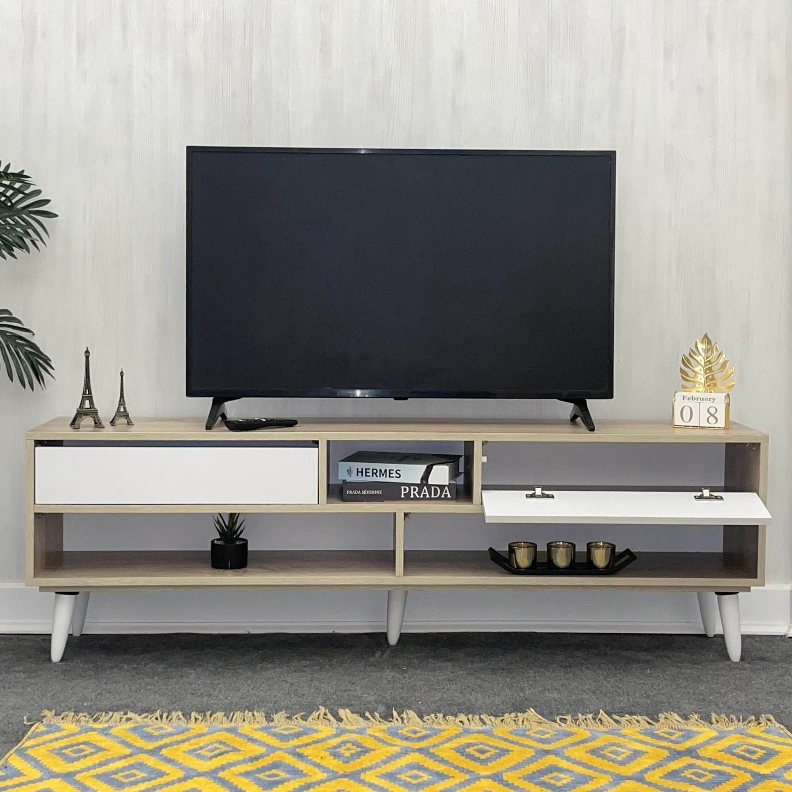 اقتن ترابيزة تليفزيون بتصميم بسيط ومميز لتجعل غرفة معيشتك أكثر جمالًا وتميزًا، الترابيزة تمكنك من ترتيب أجهزة التحكم عن بعد والمقتنيات الخاصة ليظل منزلك مرتب طوال الوقت. احصل عليها الآن بسعر مميز.