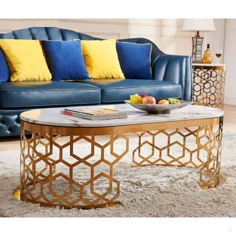 ترابيزة وسط مودرن ستيل، سطح رخامي، 100x50x45 سم – ذهبي ابيض