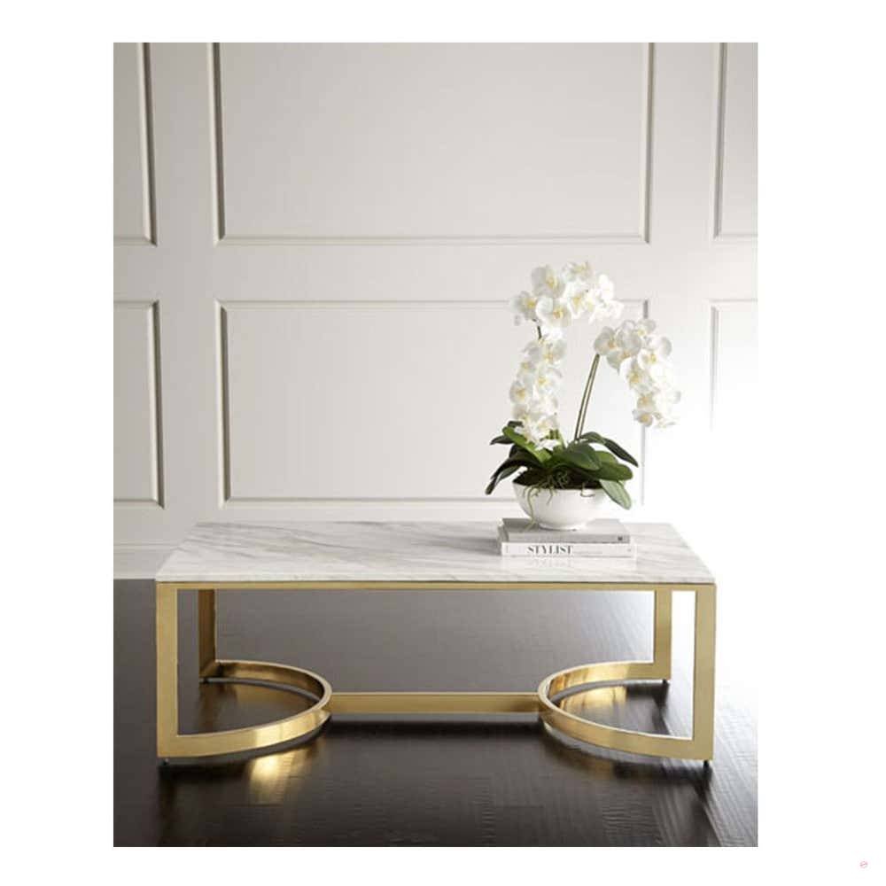ترابيزة وسط مودرن ستيل، سطح رخامي، 100x50x45 سم – ذهبي