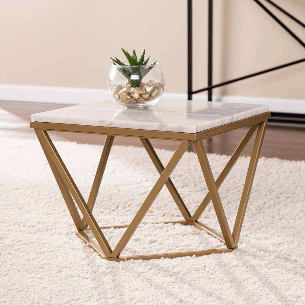 ترابيزة وسط مودرن ستيل، سطح رخامي، 60x60x45 سم – ذهبي
