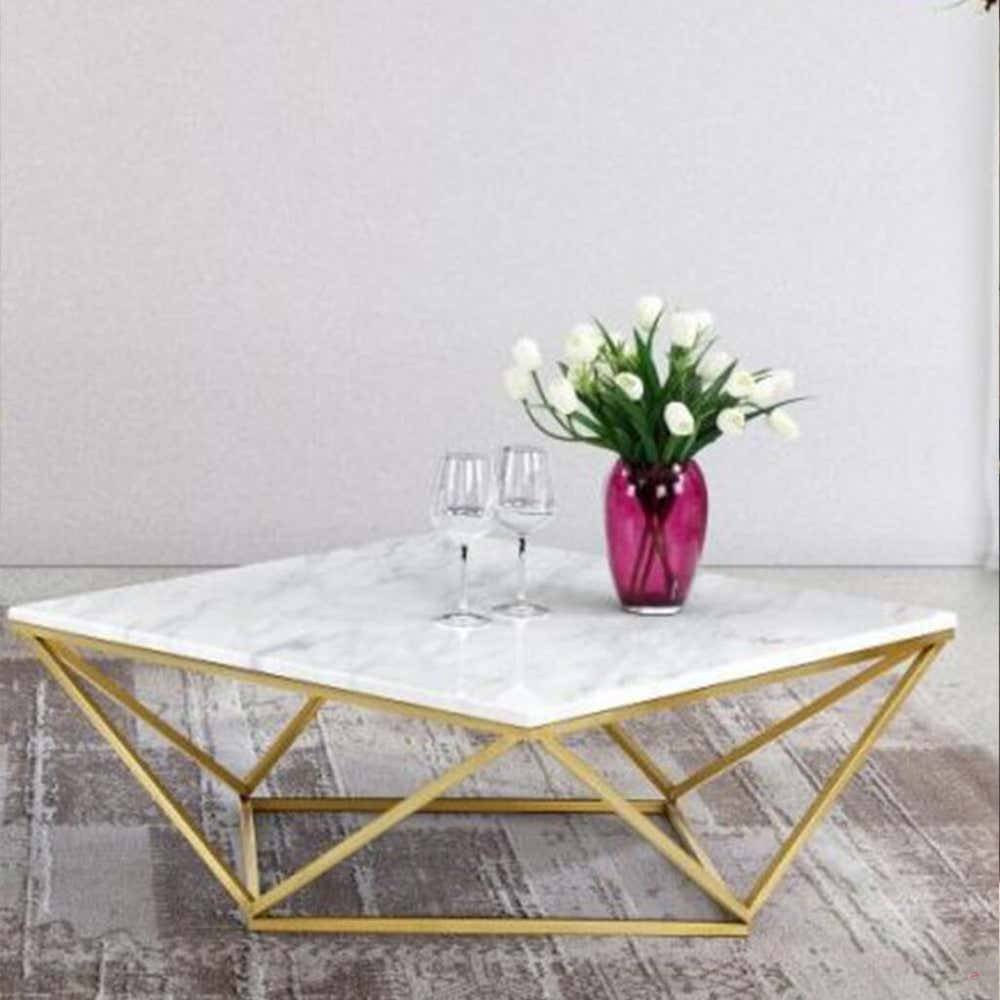 ترابيزة وسط مودرن ستيل، سطح رخامي، 80x80x45 سم – ذهبي ابيض