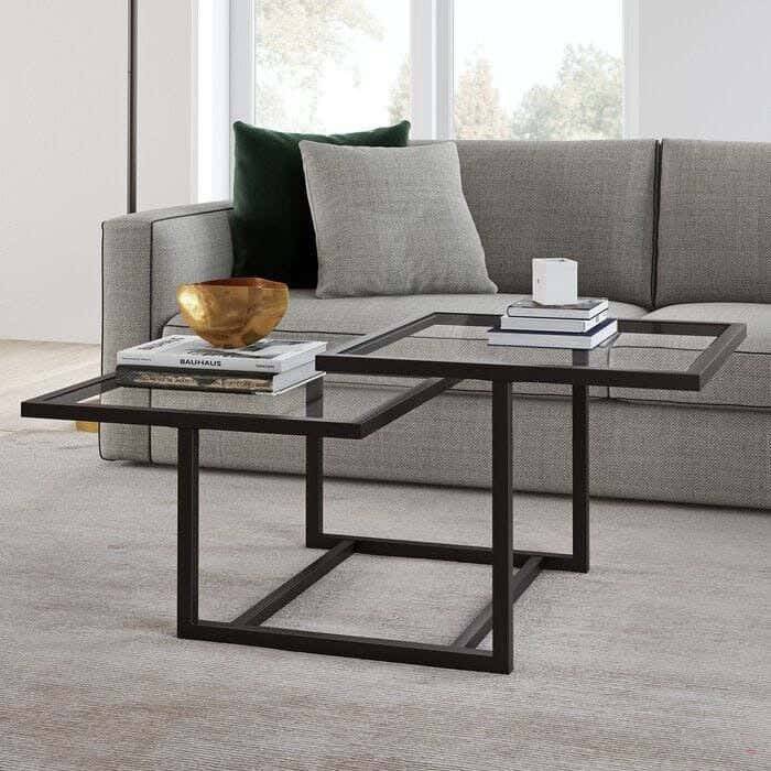 ترابيزة وسط مودرن ستيل، سطح زجاجي، 100x50x50 سم – اسود