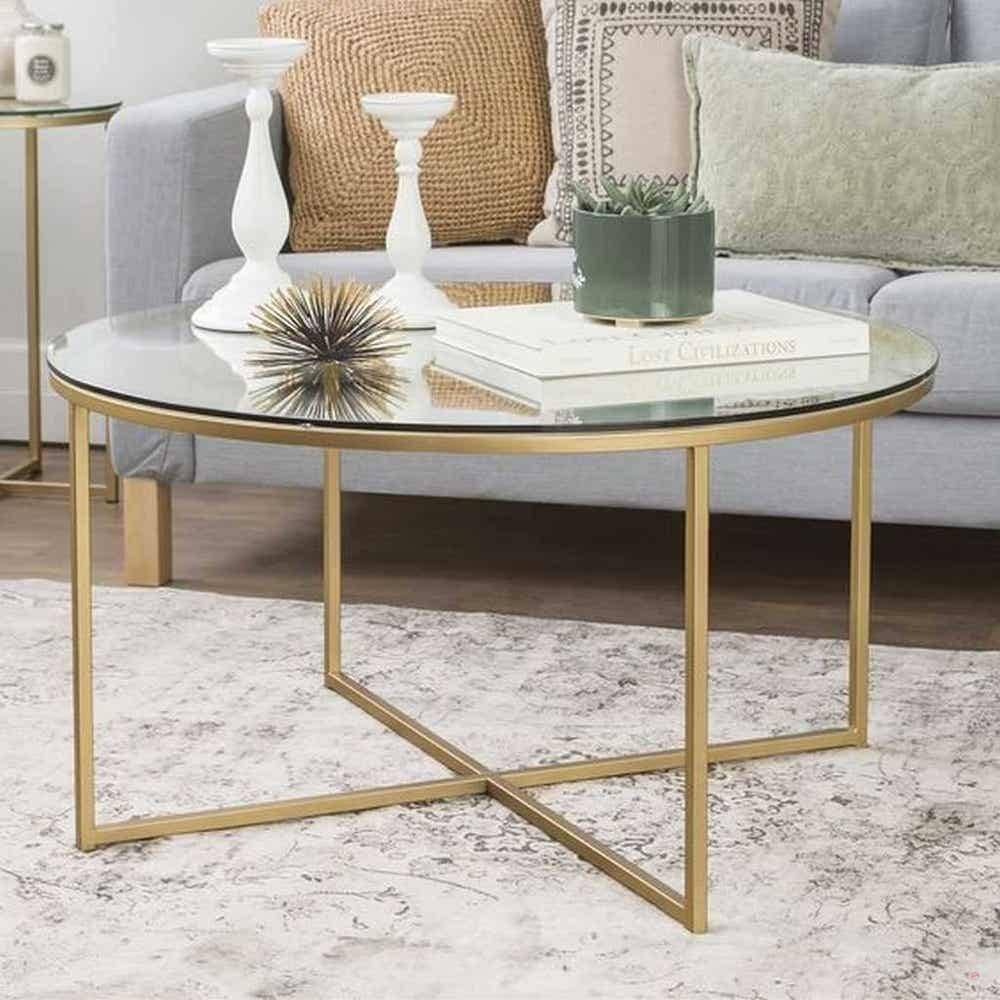 ترابيزة وسط مودرن ستيل، سطح زجاجي، 45×70 سم – ذهبي