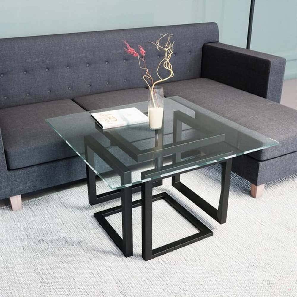 ترابيزة وسط مودرن ستيل، سطح زجاجي، 80×80×45 سم – شفاف اسود