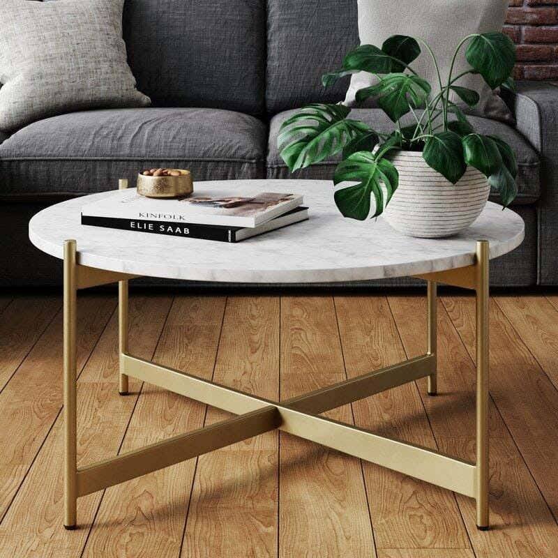 ترابيزه وسط معدن سطح خشب ام دى اف ، 80×80×45 سم – ذهبى ابيض