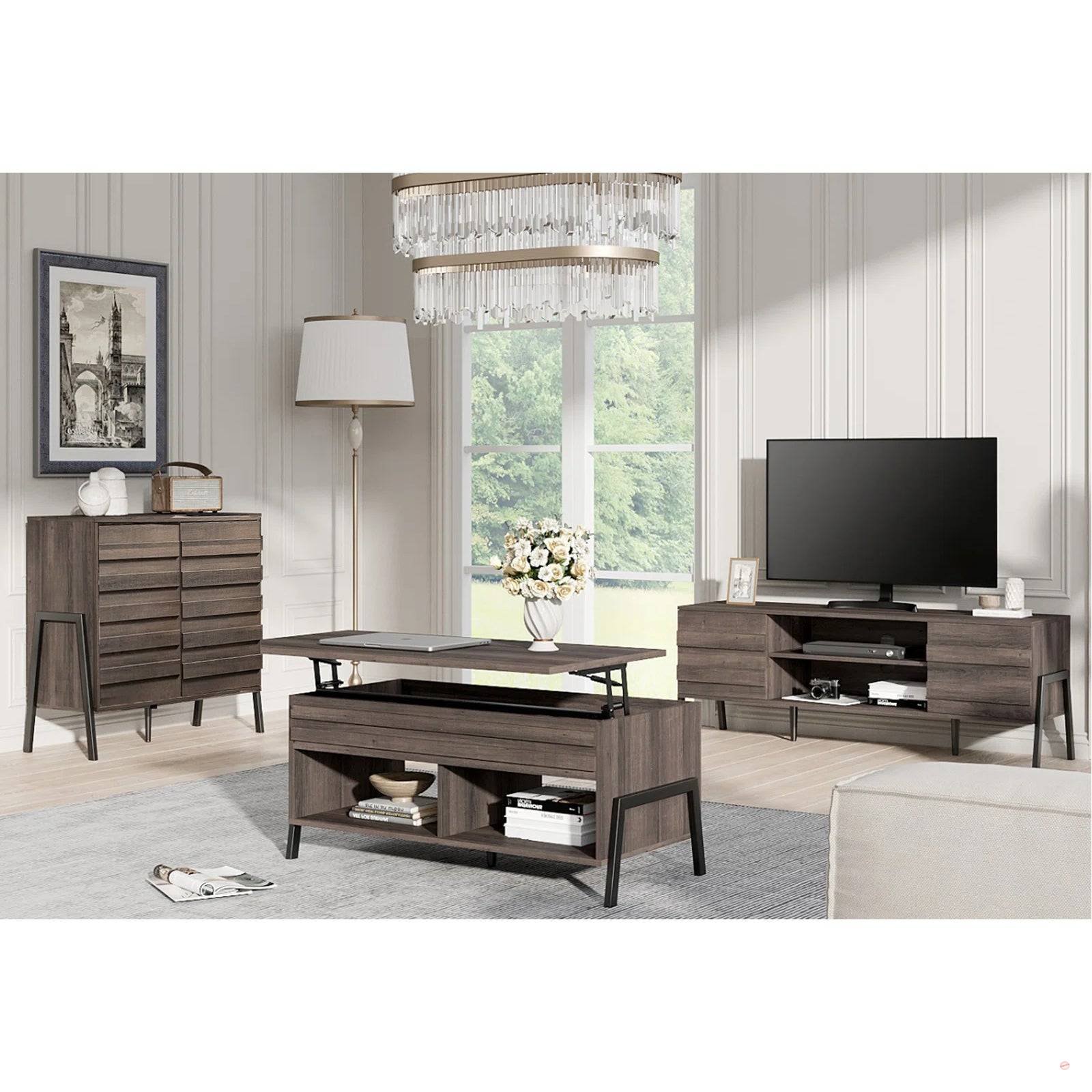 جدد غرفة معيشتك بشرائك مجموعة كاملة من ترابيزة تليفزيون مع ترابيزة قهوة وجزامة. طقم مودرن مصنوع من خامات عالية الجودة، ترابيزة القهوة مزودة بأدراج لتخزين أدوات التحكم عن بعد أو المقتنيات الخاصة وأيضًا يمكنك وضع بعض قطع الديكور عليها.