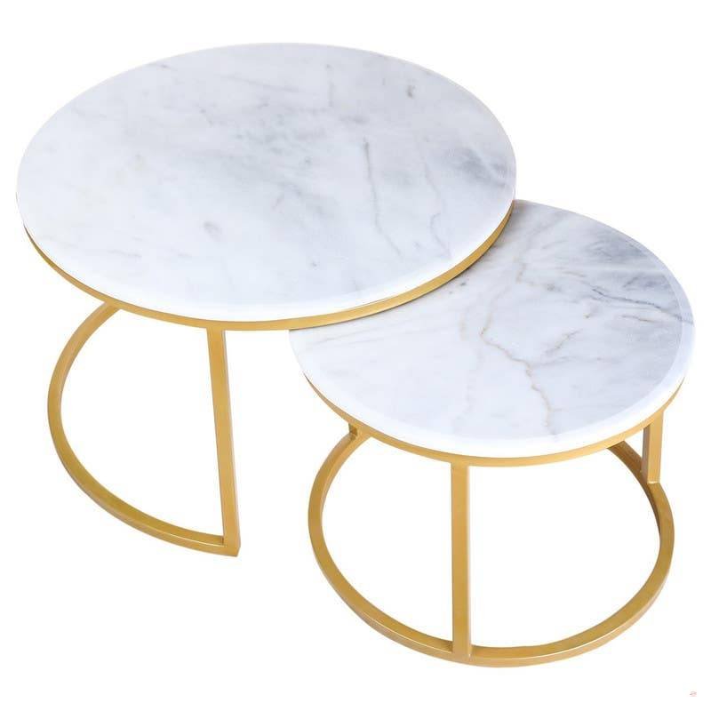 طقم ترابيزات وسط شكل دائري معدن، قطعتين، سطح رخام – ذهبي