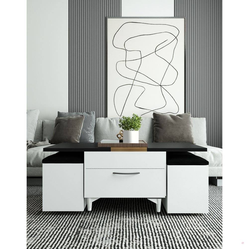 طقم ترابيزة وسط خشب ام دي اف، ميكانيزم، 120×60×45 سم، 4 قطع بف – ابيض اسود