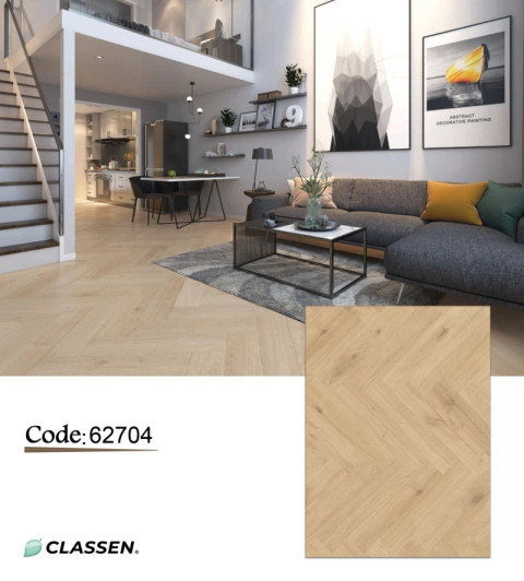 أرضيات خشبية صناعية من Classen. تمنحك إحساس الخشب الطبيعي الدافئ مع ميزات التحمل العالية للأرضيات الحديثة. اختيار ذكي للمساحات السكنية والتجارية. كود المنتج: 62704.