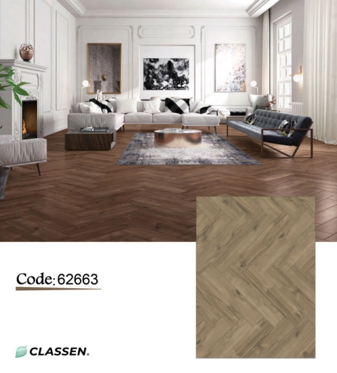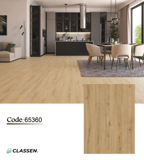 أرضيات Classen الألمانية: الحل الأمثل للأرضيات العملية والأنيقة. تتميز بتقنيات قفل متطورة لسهولة التركيب ومقاومة الرطوبة السطحية، مع ملمس يحاكي الخشب الحقيقي. كود المنتج: 63268.