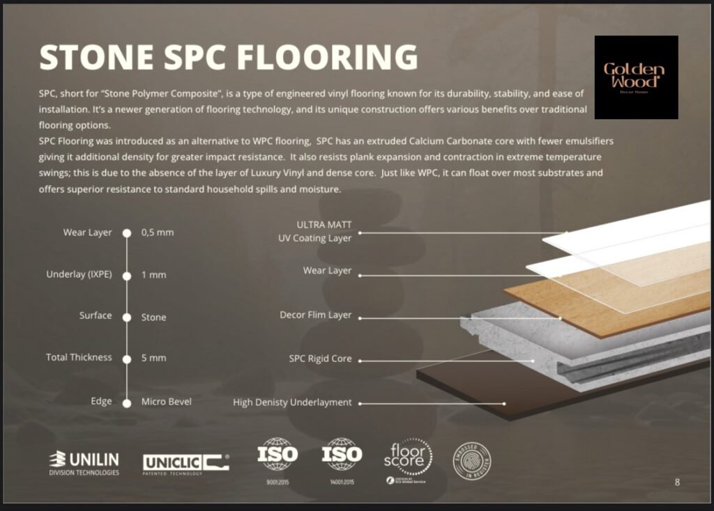 هل تبحث عن مظهر الرخام الطبيعي وفخامة الحجر ولكن بمرونة ودفء الأرضيات الحديثة؟ تقدم لك جولدن وود (Golden Wood) الحل الأمثل في السوق المصري: أرضيات SPC الشكل الحجري من براند “أيريا” (Area) التركي.